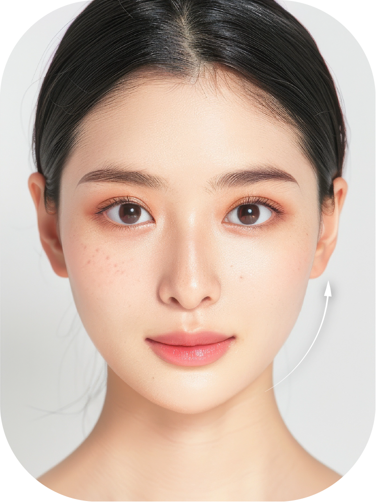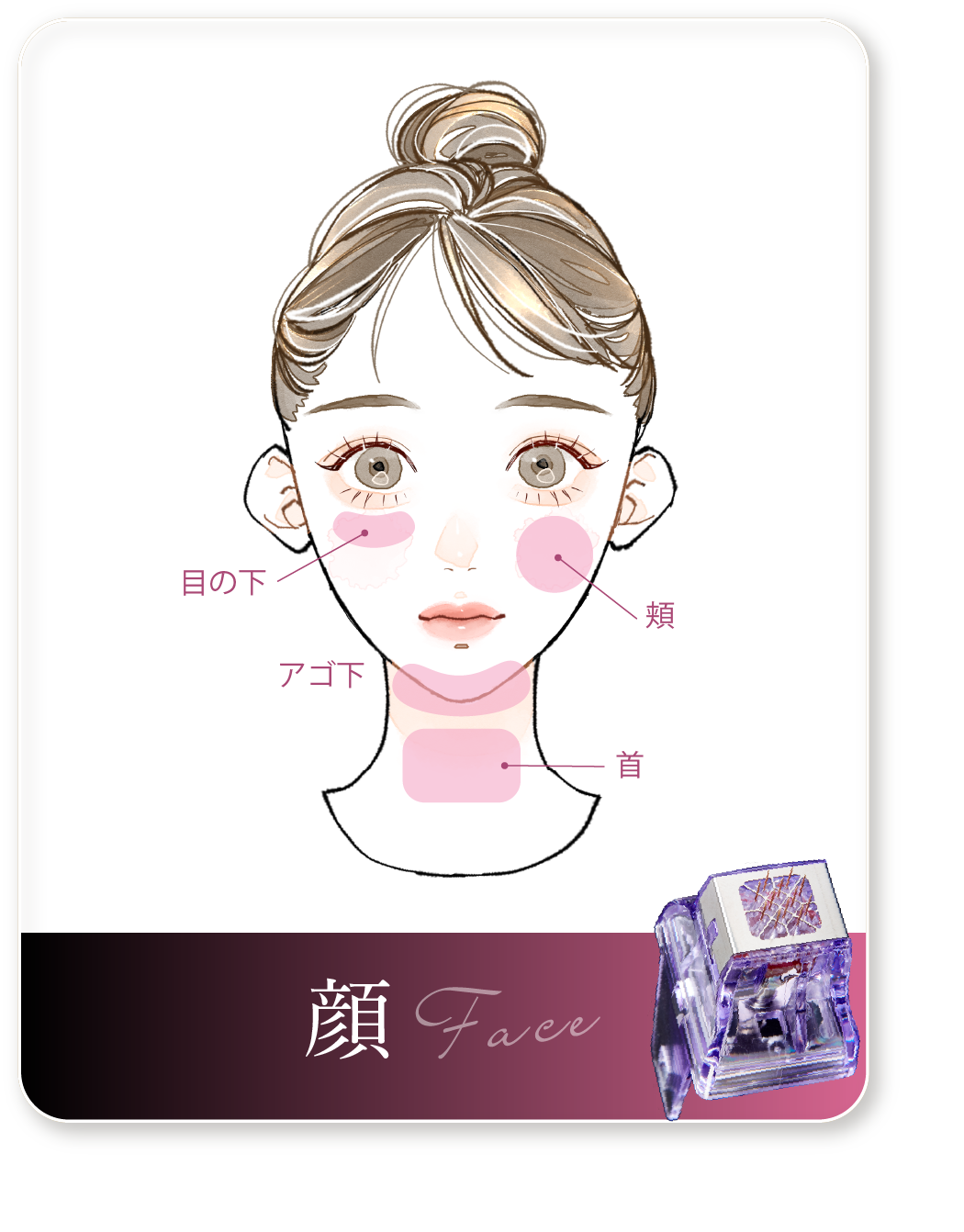フェイスラインをすっきり整える効果があります。さらに、線維芽細胞が刺激されることでコラーゲンやエラスチンが生成されるためハリや弾力がアップし、たるみ改善に繋がります。