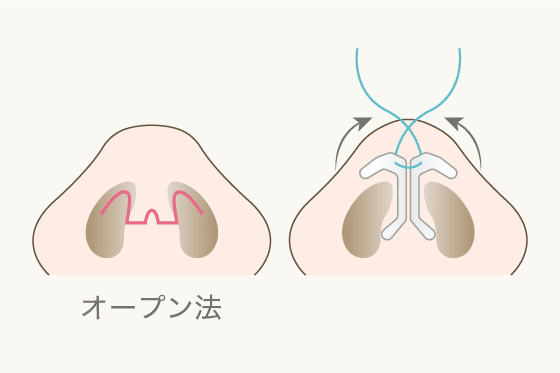 施術は鼻の穴の間にある鼻柱を切開するオープン法で行います。